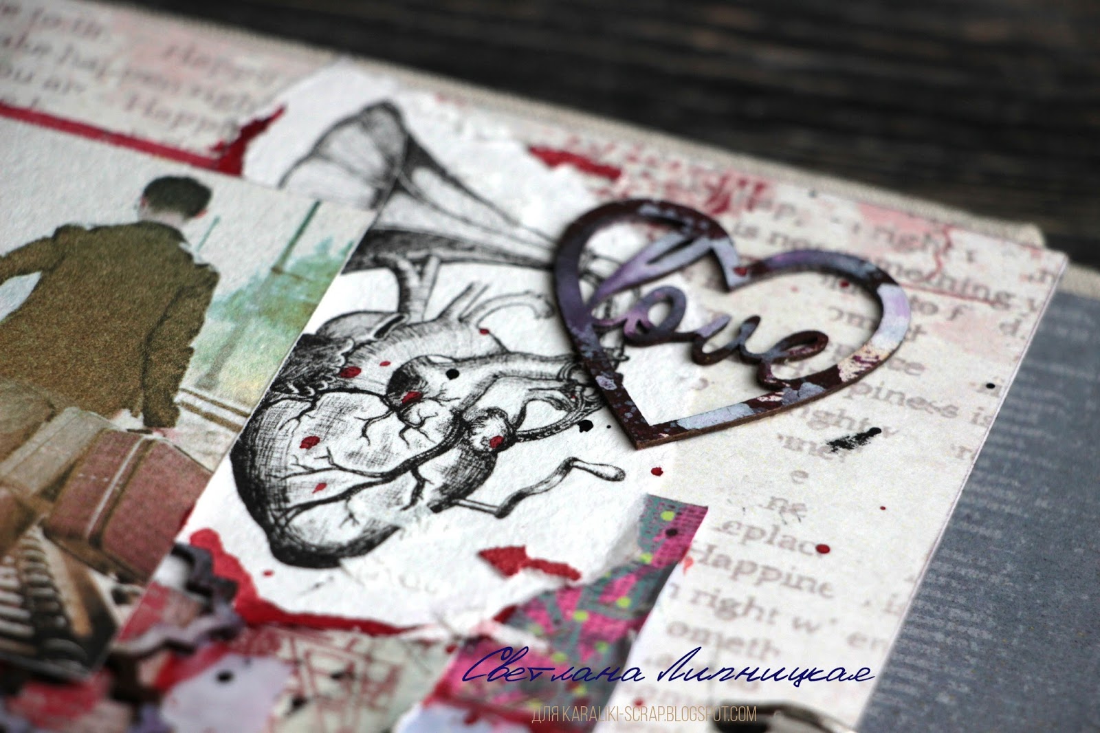 Для начала я расскажу немного о материалах и процессе создания)) Альбом 20 см на 25 см, коллекция бумаги "На перроне" от дизайнера Виктории Клабуковой-Апаликовой, обложка из толстого переплетного картона с наклеенным на него обычным белорусским небеленым льном, кольца 2,2 см в диаметре. Тоннель на обложке сделан с помощью трафарета и текстурной пасты с песком, поверх набрызгано спреями и накапано алкогольными чернилами от магазина Каралики, а еще намазано немножко акриловой краски. На страничках можно разглядеть мои любимые штуки, мой личный мастхэв - трафареты от Илоны и чипборд от Наташи)).