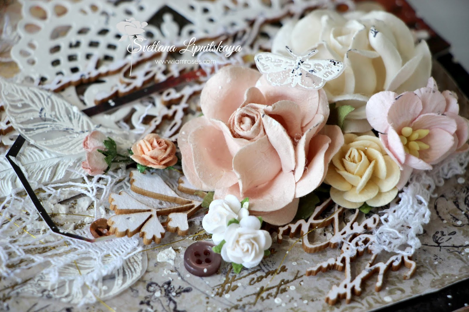 Хочу показать вам свою новую работу - это страничка "Love...", которую я сделала для блога I Am Roses. Цветы использовала только тайские, не потому, что есть ограничения у дк, а потому, что у производителя огромный выбор потрясающих роз, лилий, цветов вишни, листиков и прочего!